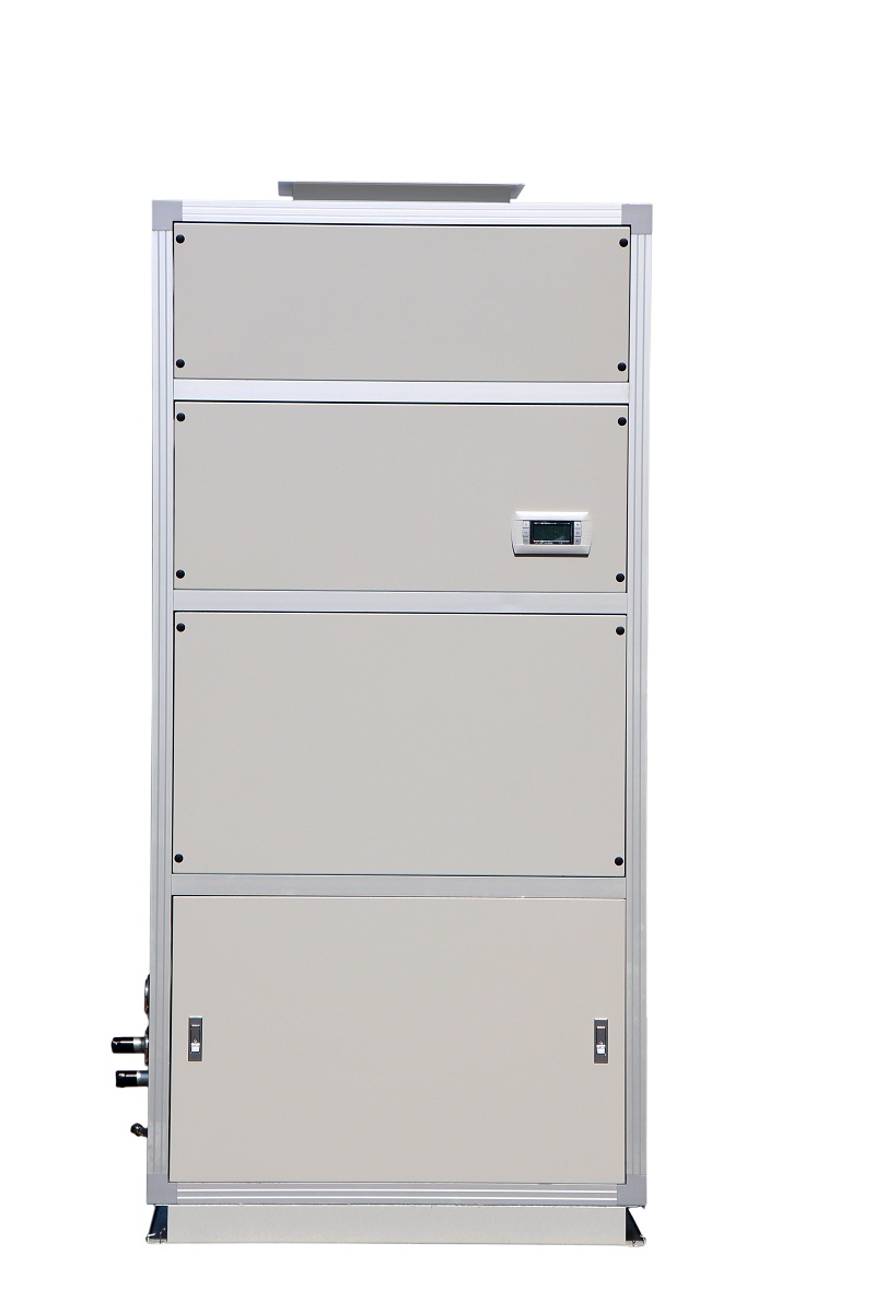 冷卻除濕設備是使冷媒通過散熱肋管與空氣進行熱交換。一般用水或鹽水做冷媒的,則叫水冷式;直接用氟里昂等制冷劑做冷媒的,稱為直接蒸發式或直膨式(即目前使用廣泛、能效比較高的冷凍除濕機,如升溫型除濕機、管道除濕機、調溫除濕機、降溫除濕機)。蒸發冷卻器與制冷機組裝成整體的,稱風冷調溫除濕機或管道除濕設備。